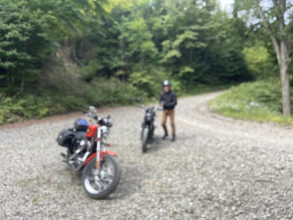 かなりぼやけた写真になってしまってすみません。1日目に昼食の待ち合わせ場所まで時間があり峠越えの道を選んだら下りは林道になりこけないように1速でゆっくり下った。本当にこけなくてよかった。
